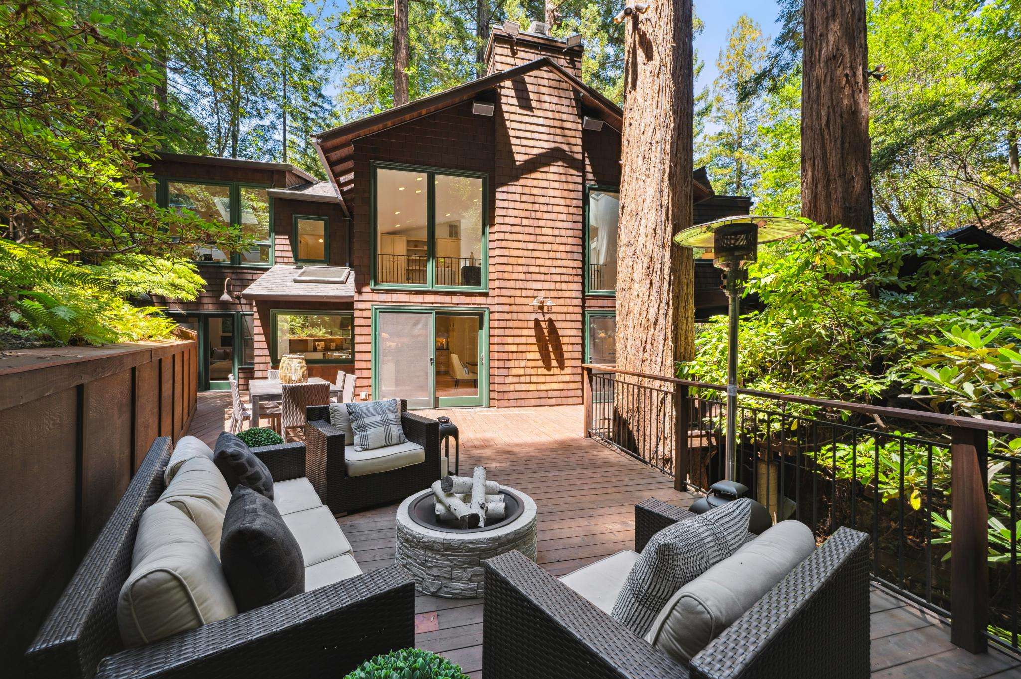 - Expansive windows frame majestic redwood views, effortlessly blending the indoors with the surrounding natural beauty
